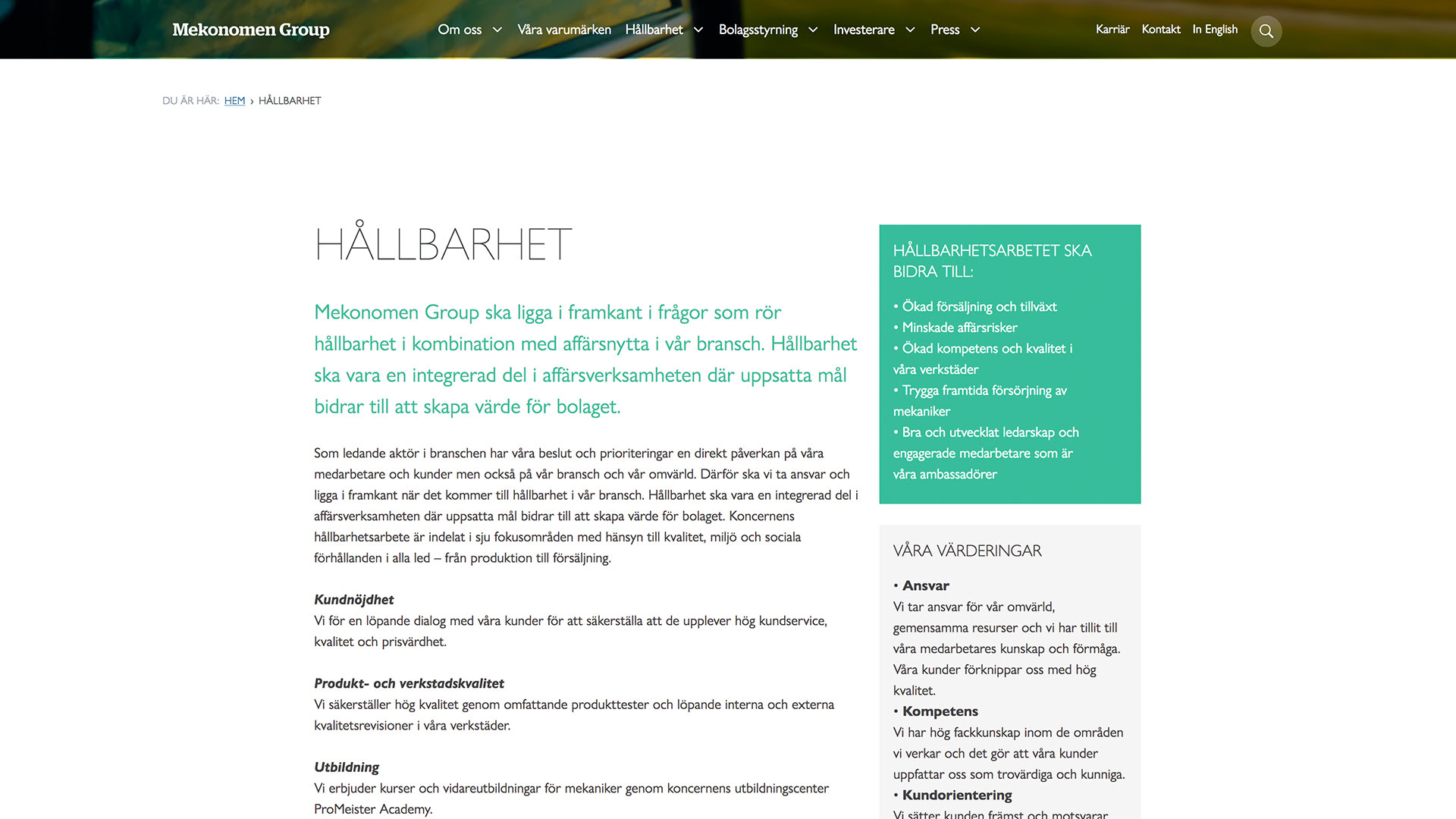 We built a new site for the Mekonomen Group.
