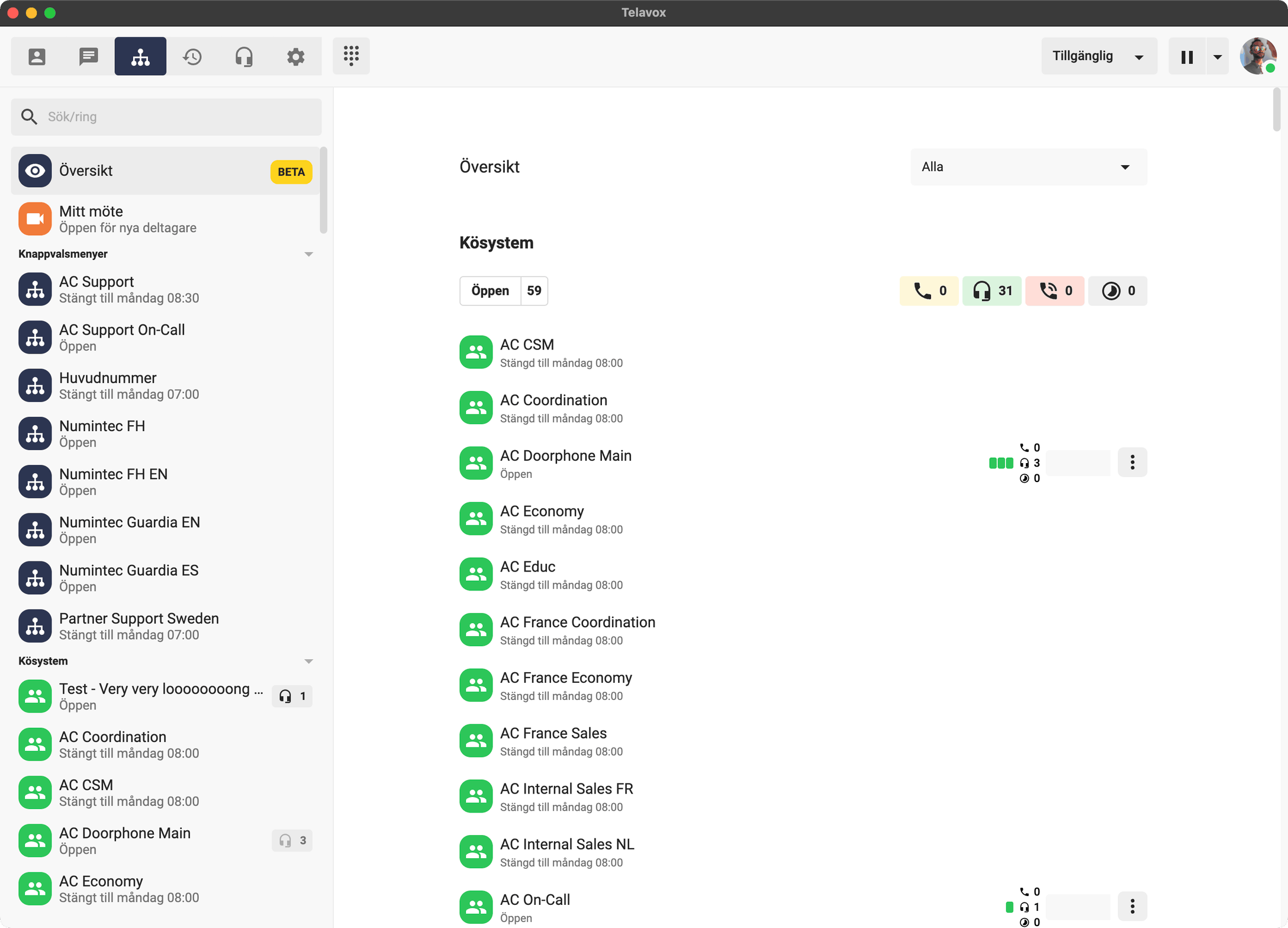 Switchboard, chat, meetings, and contact center