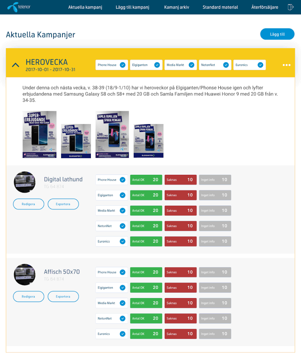 This project involved the development of an internal tool for Telenor, designed to streamline campaign management and communication with resellers. The application allows administrators to efficiently create, monitor, and manage various campaigns tailored to individual resellers.
